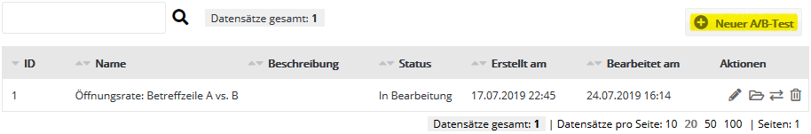 Um einen neuen A/B-Test anzulegen, klicken Sie 'Neuer A/B-Test'.
