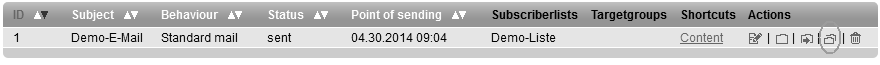 To do this, click the 'Copy' icon of the archived mailing. At the subsequent pop-up window, select the folder where the copy of the archived email should be saved. If necessary, change the Subject, which was been inherited from the original mailing. If you copied a template-based Mailing, an additional option will offer to convert the mailing into its Text and HTML parts. If you make this selection, the copied mailing is no longer based on the template. You can make directly in the HTML source code changes then what however appropriate HTML knowledge is required. After your chose you will get to mailings → email . |