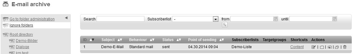Feel free to use the 'Folder administration' to create new subfolders, to rename or delete existing folders etc. Restoring an email from the archiveYou want to send an archived mailing again or re-use as the basis for a future mailing?