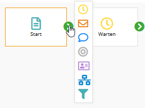 Um einen neuen Baustein zwischen vorhandene Bausteinen einzufügen, klicken Sie auf den grünen Pfeil des Vorgänger-Bausteins: